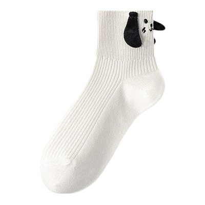 Anna-Kaci 2 Pairs Ribbed Ankle Socks with 3D Puppy Ear Detail and Embroidered Dog Face for Fun Everyday Style