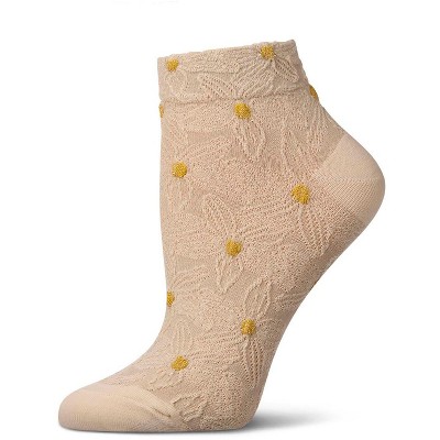 Memoi Women's Cotton-Rich Floral 3D-Textured Shortie Ankle Sock