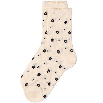 Memoi Women's "Deco Flower" Cotton-Rich Mesh Ankle Sock Ivory 9-11