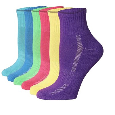 Tipi Toe Women's 6 Pairs Running & Athletic Sports Performance Rainbow Colors Quarter Socks