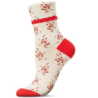 Memoi Vintage Floral Women's Cotton Blend Ankle Socks