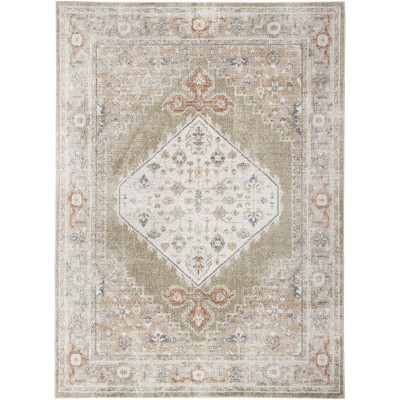 - light grey vintage medallion washable area rug