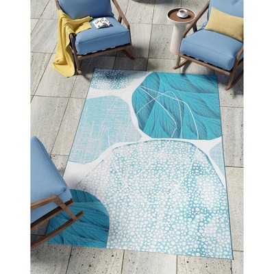 - colorful outdoor rugs blue palm leaf