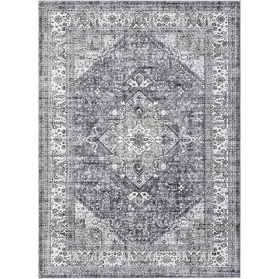 COZONY Floral Vintage Area Rug, Machine Washable Non-Slip Floor Mat for Living Room and Bedroom