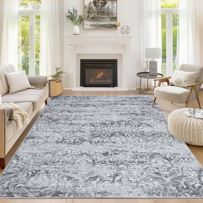 GAOMON Area Rug Living Room Rug Vintage Floral Print Rug Low Pile Non Slip Floor Carpet