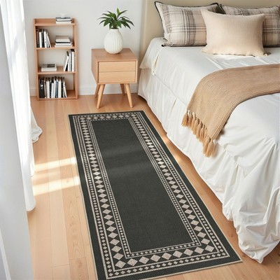 Modern Easy Jute Rug Machine Washable Geometric Bordered Indoor Outdoor Carpet