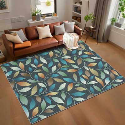 WhizMax Modern Rugs Floral Print Mat Non-Slip Boho Low Pile Non-Shedding Carpet