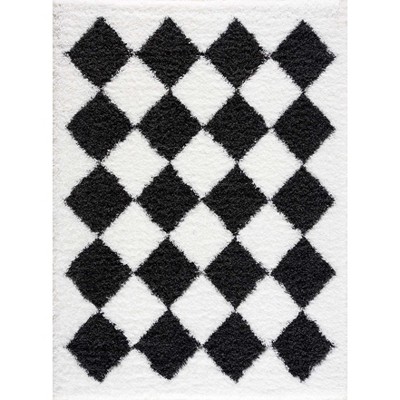 - black and white plaid rug