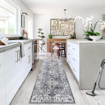 - light grey vintage medallion washable area rug