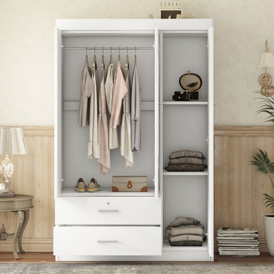 Armoires are a great way to organize your clothes and other essentials. These tall, usually two-door wardrobes, come with drawers, shelves and hanging space. One can never have too much space and these portable closets are the answer to all your storage needs. At Target, we have a variety of curated categories, so you’re sure to find what’s best for your home or office. A standard clothing armoire is a versatile option, which will accommodate just about anything. The hanging rod lets you store the clothes that don’t fit in your closet, while the armoire with drawers is ideal for your folded clothes, socks and more. Adjustable shelves give you lots of space for your shoes, accessories and everyday essentials. Find standalone closets in a variety of designs to cater to different needs. If you’re looking for an armoire that suits the decor of your room, take your pick from the various finishes available in wood or metal. Choose a small or large wardrobe depending on the size of your room and the things you want to stow away. Storage armoires with fitted or adjustable shelves give you ample space to store your books, board games, movie collection or throw blankets. Whether you want to store out-of-season clothing or just need extra closet space, a garment rack is the perfect space-saving solution. Stash away your dresses, shirts, jackets and other outfits with this all-in-one closet. Find something new every day with our constantly updated collection of armoire closets. Browse through the collection at Target and pick what’s right for you.