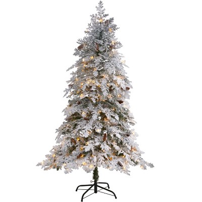 Nearly Natural 6-ft Flocked North Carolina Fir Artificial Christmas Tree with 450 Warm White Lights and 1560 Bendable Branches