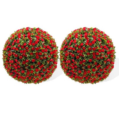 TROPOW Artificial Flower Ball Tree with Ground Spike, Fake Topiary Trees