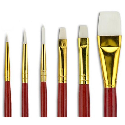 Fundamentals Long Handled Brush Set - Economical Paint Brush Set No. 18 for Beginning Artists - Natural and Synthetic Bristle Assorted Set of 6 Paint