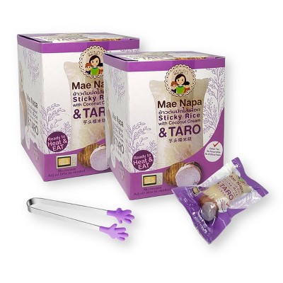 Mae Napa Thai Sticky Rice with TARO Filling Khao Tom Mud Ready to Heat & Eat 16.93 Oz. X 2 Boxes ( 80 g X 6 X 2) with Mini Silicone Tongs
