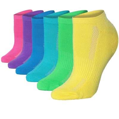Tipi Toe Women's 6-Pairs Running & Athletic Sports Performance Grey-blue/Green/Yellow Sole Colors Patterned Quarter Socks