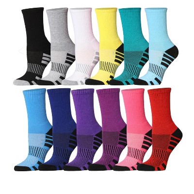 Tipi Toe Womens 12 Pairs Bright Colors Patterned Cushion Performance Socks for Running, Hiking, and Athletic Activities