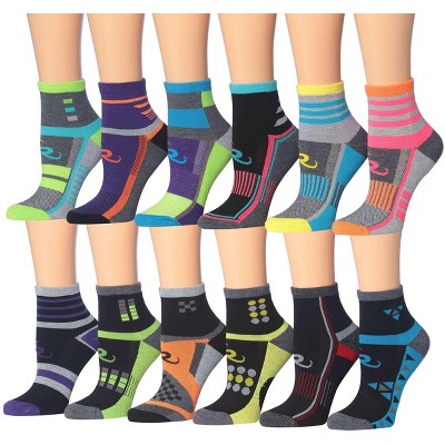 Tipi Toe Women's 12-Pairs Running & Athletic Turbo Pop Combo Patterned Sports Performance Ankle/Quarter Socks