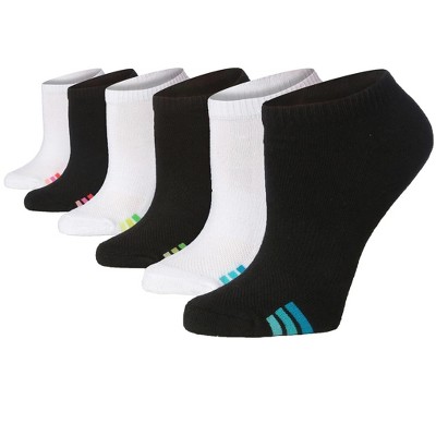 Tipi Toe Women's 6-Pairs Running & Athletic Sports Performance White-Blue/Red/Orange Sole Colors Patterned Quarter Socks