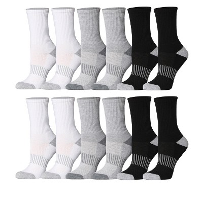 Tipi Toe Womens 12 Pairs Cushioned Running Crew Socks for Running, Hiking, and Athletic Activities