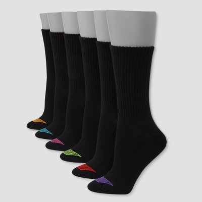 Hanes Premium Women's 6pk Cool Comfort Lightweight Crew Socks - Black 8-12: Midweight Knit, Banded Cuff