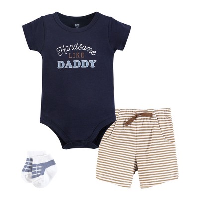 Hudson Baby Infant Boys Bodysuit, Short and Sock, Handsome Daddy