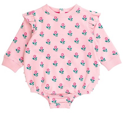 RuffleButts Baby Girls Sweatshirt Bubble Romper