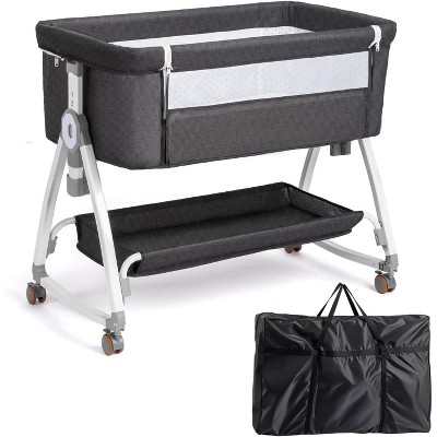 JOYMOR 3 in 1 Baby Bassinet, Bedside Bassinet for Baby, with Comfy Mattress and Wheels, 6 Height Adjustable Easy Folding Portable Bedside Crib