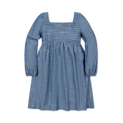 Hope & Henry Girls' Long Sleeve Ruched Bodice Chambray Dress, Toddler
