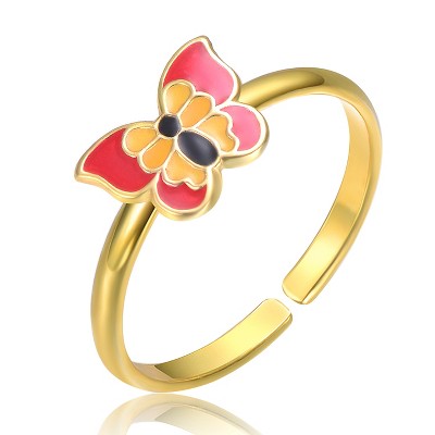 Guili 14K Gold Plated Adjustable Ring with Red, Yellow & Black Enamel Butterfly, a Fun & Colorful Jewelry Piece for Kids to Wear & Enjoy