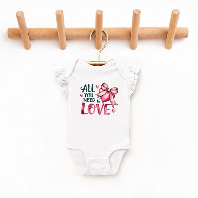 The Juniper Shop All You Need Is Love Coquette Baby Flutter Sleeve Bodysuit