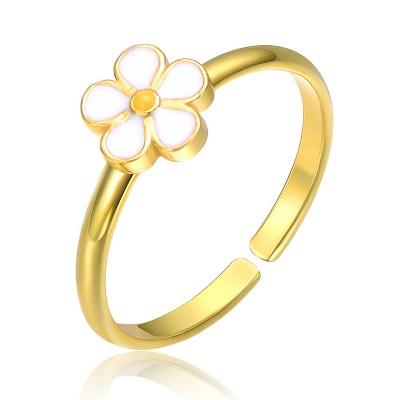 Children's 14K gold plated white flower daisy adjustable ring. Cute and elegant jewelry for kids. Perfect for everyday wear and special occasions.