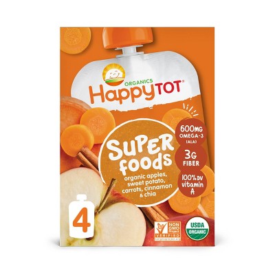 HappyTot Super Foods Organic Apples Sweet Potato Carrots & Cinnamon with Super Chia Baby Food Pouch - (Select Count)