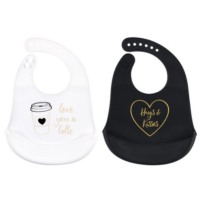 Hudson Baby Infant Girl Silicone Bibs 2pk, Latte, One Size