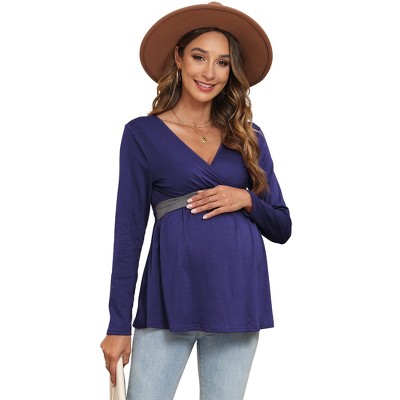 Clearlove Women Casual Maternity Nursing Shirts Wrap V Neck Long Sleeve Top