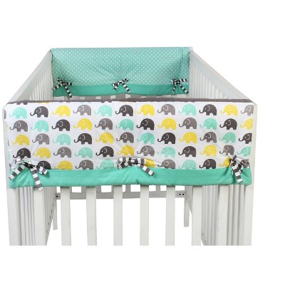 Bacati - Elephants Crib Rail Guard Covers Aqua/Lime/Gray set of 2 Small Side