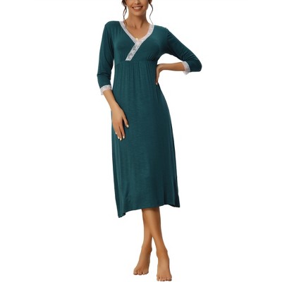 cheibear Women's Soft Lace Trim V Neck Long Sleeve Rayon Nightshirt
