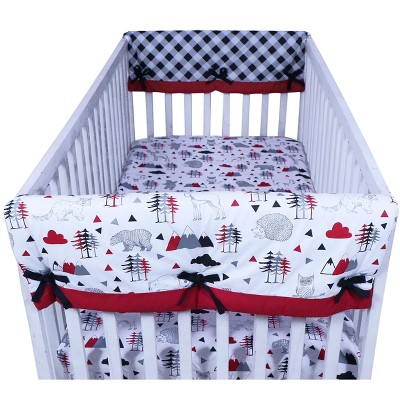 Bacati - Lumberjack Red/Black/Gray Boys Cotton Crib Rail Guard Covers set of 2