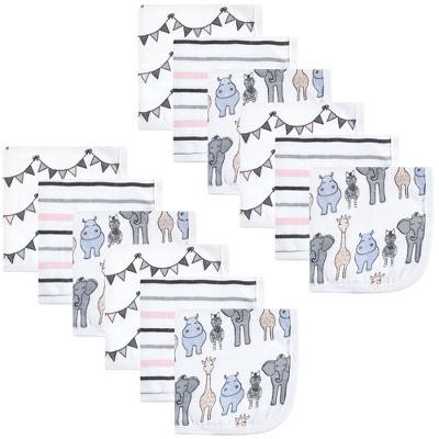 Hudson Baby Infant Girl Cotton Muslin Washcloths, Pink Safari, One Size