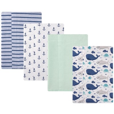 Hudson Baby Cotton Flannel Burp Cloths 4-Pack, Sea Friends, One Size