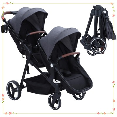 Double Stroller Track Tandem Stroller for Infant and Toddler, Foldable Pushchair Bassinet Pram