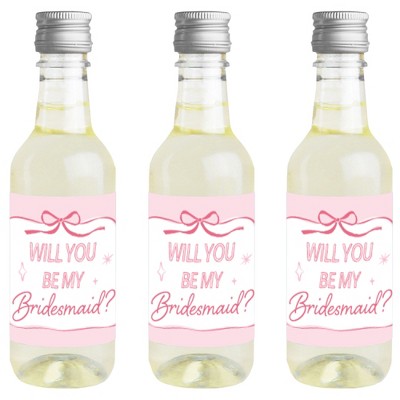Big Dot of Happiness Mini Will You Be My Bridesmaid Bottle Stickers, Tying The Knot Bachelorette, Mini Wine and Champagne Bottle Labels - Set of 16