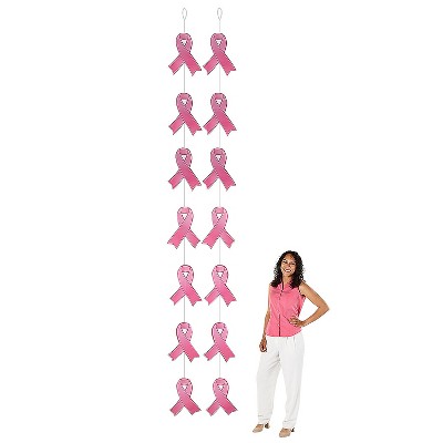 Fun Express 12" x 12 Ft. Breast Cancer Awareness Hanging Pink Ribbon Decor - 2 Pc.