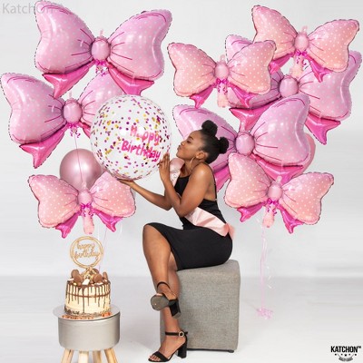 KatchOn, Huge Pink Bow Balloon - 35 Inch, Pack of 10 | Bow Balloons for Girls | Free Throws or Pink Bows Gender Reveal Decorations