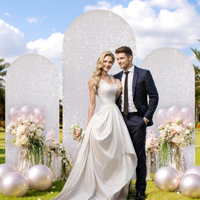 7.2/6.6/6 ft Sequin Wedding Arch Cover Spandex White Arch Backdrop Stand Cover for Party,Birthday, Baby Shower,Ceremony Banquet Decor (No Arch Stand)