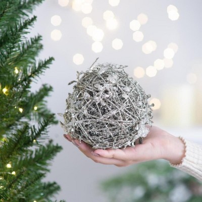 NAYSAYE Party Decoration and Accessories Set of 4 Iced Leaf and Twig Hanging Ornament for Holiday Christmas, Silver, 4.5"*4.5"*4.5"