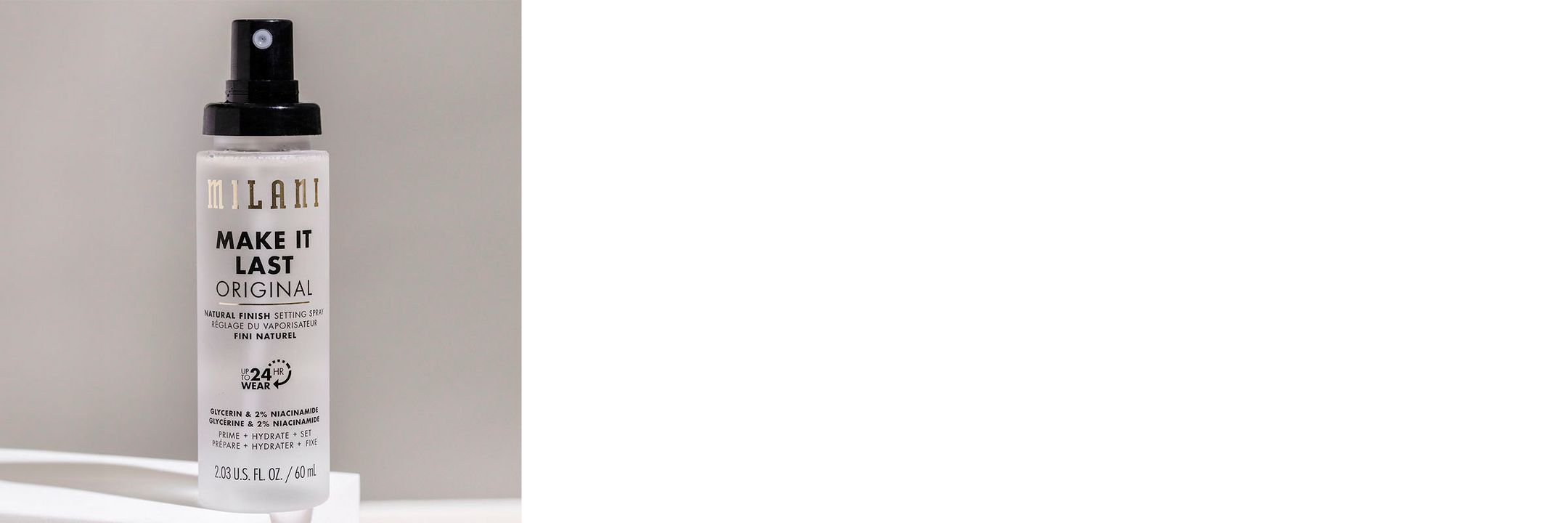 Finish your look and apply Make It Last Original Setting Spray to provide waterproof, sweatproof results with up to 24 hours of wear. Make It Last Original Setting Spray, made with moisture-rich glycerin and multi-tasking skin powerhouse 2% niacinamide, sets makeup while leaving skin hydrated with the perfect natural finish. The vegan and cruelty-free formula also helps keep makeup from fading and settling into lines, so your look lasts all day (and into the night). To apply, hold bottle 8–10 inches from your face and mist evenly.