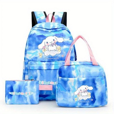 Paaaawaters 3-Piece Daily Bag Set with Cute Cartoon Print Blue White Tie-Dye and Pink Accents