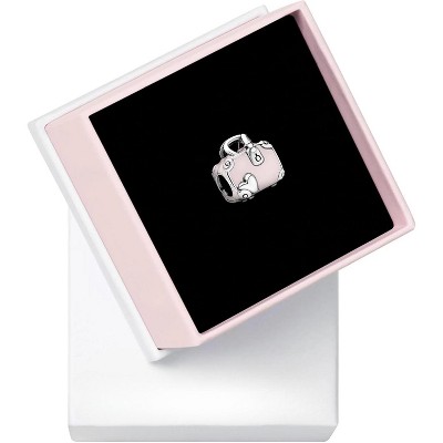 Sterling Silver Pink Travel Bag Charm with Enamel, Cute Jewelry Gift for Women