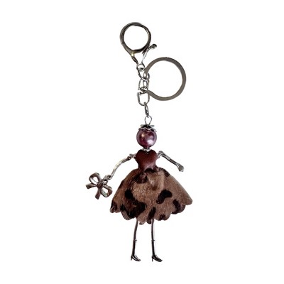 Wrapables Hanging Fashionista Doll Keychain, Crystal Rhinestone Keyring Bag Charm, Brown Animal Print