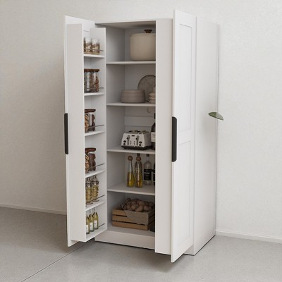 Famapy Modern White Pantry Cabinet With  Glass Doors